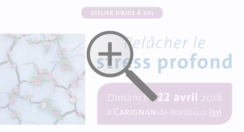 Cliquez pour consulter l'annonce complète Relâcher le stress profond - 22 avril 2018Les outils de la résilience - 18 mars 2018Soins par la vibration des couleurs - 10 & 11 mars 2018
